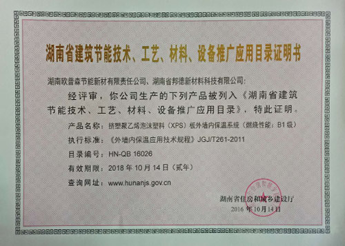 湖南省外墻內(nèi)推廣證明2019-5-2